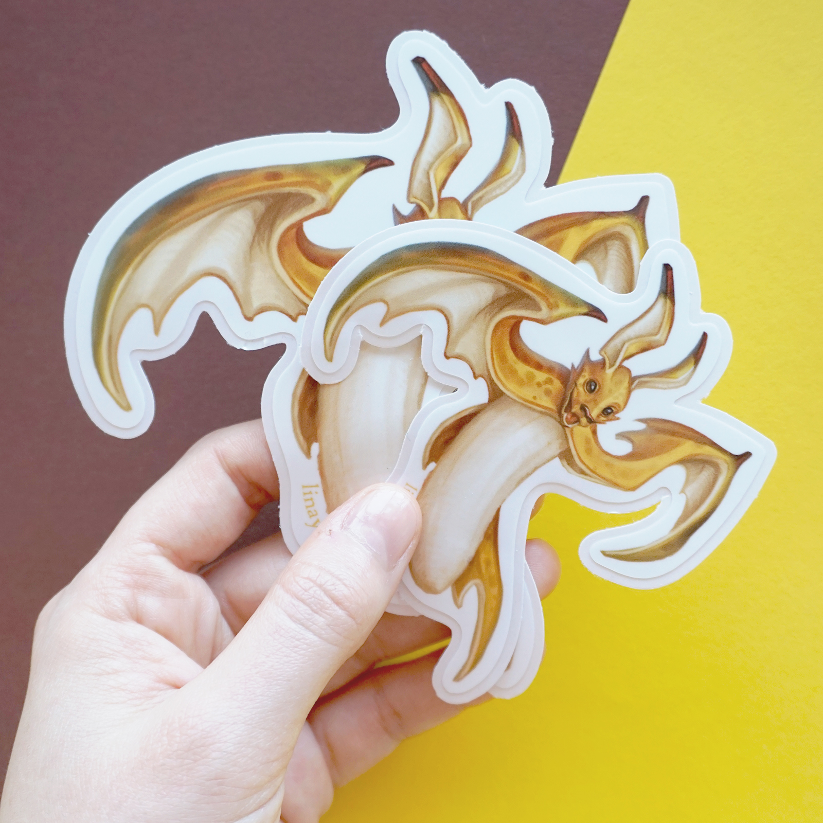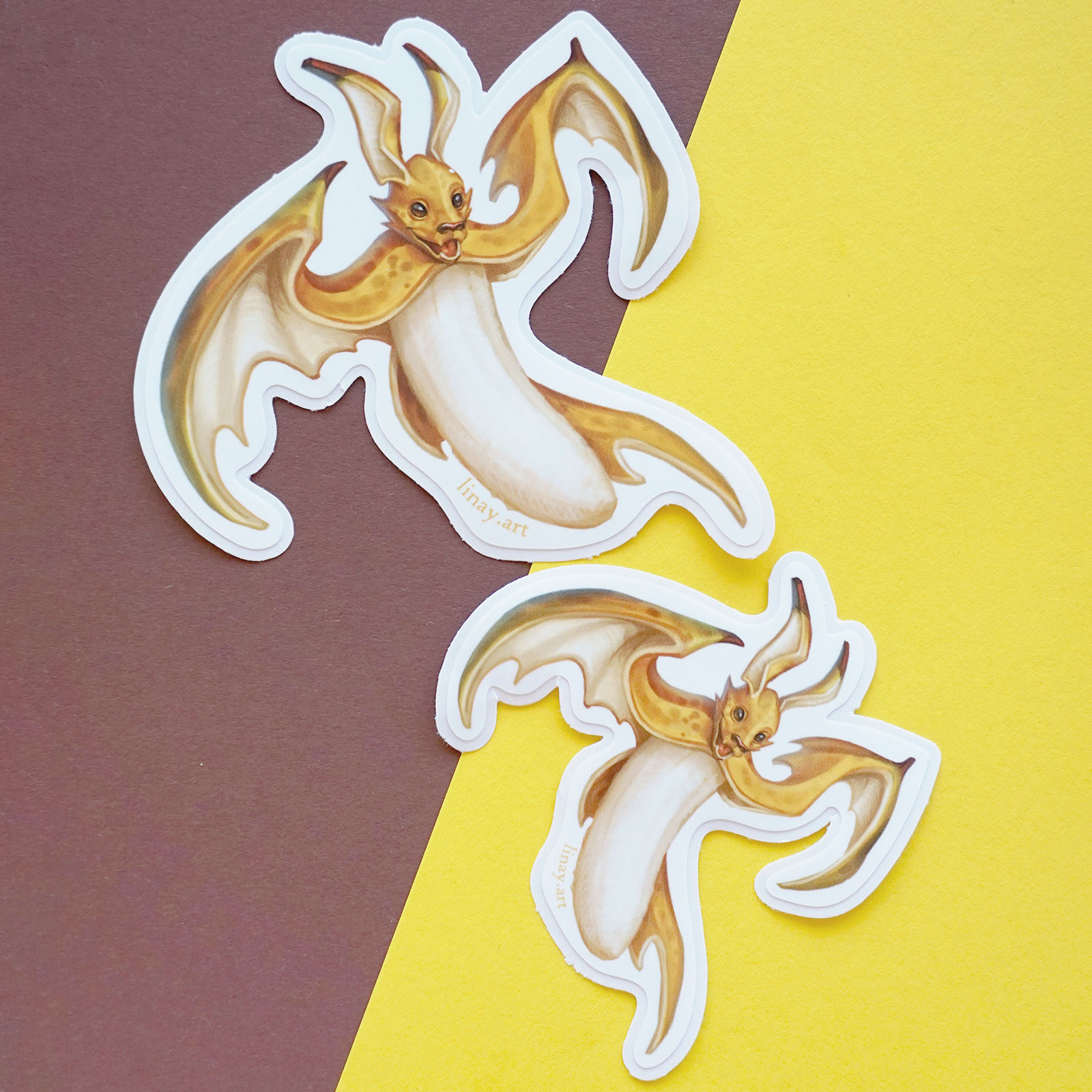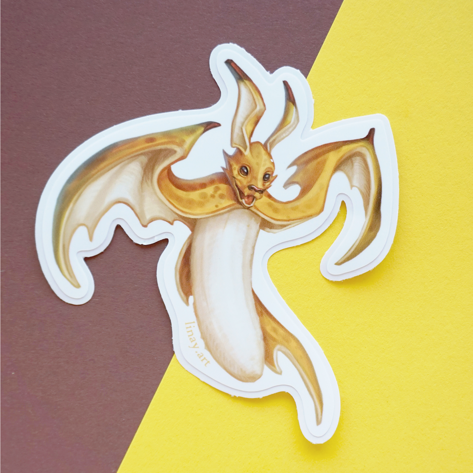 An original illustrated sticker featuring the Banana Bat from my Food Monster collection.