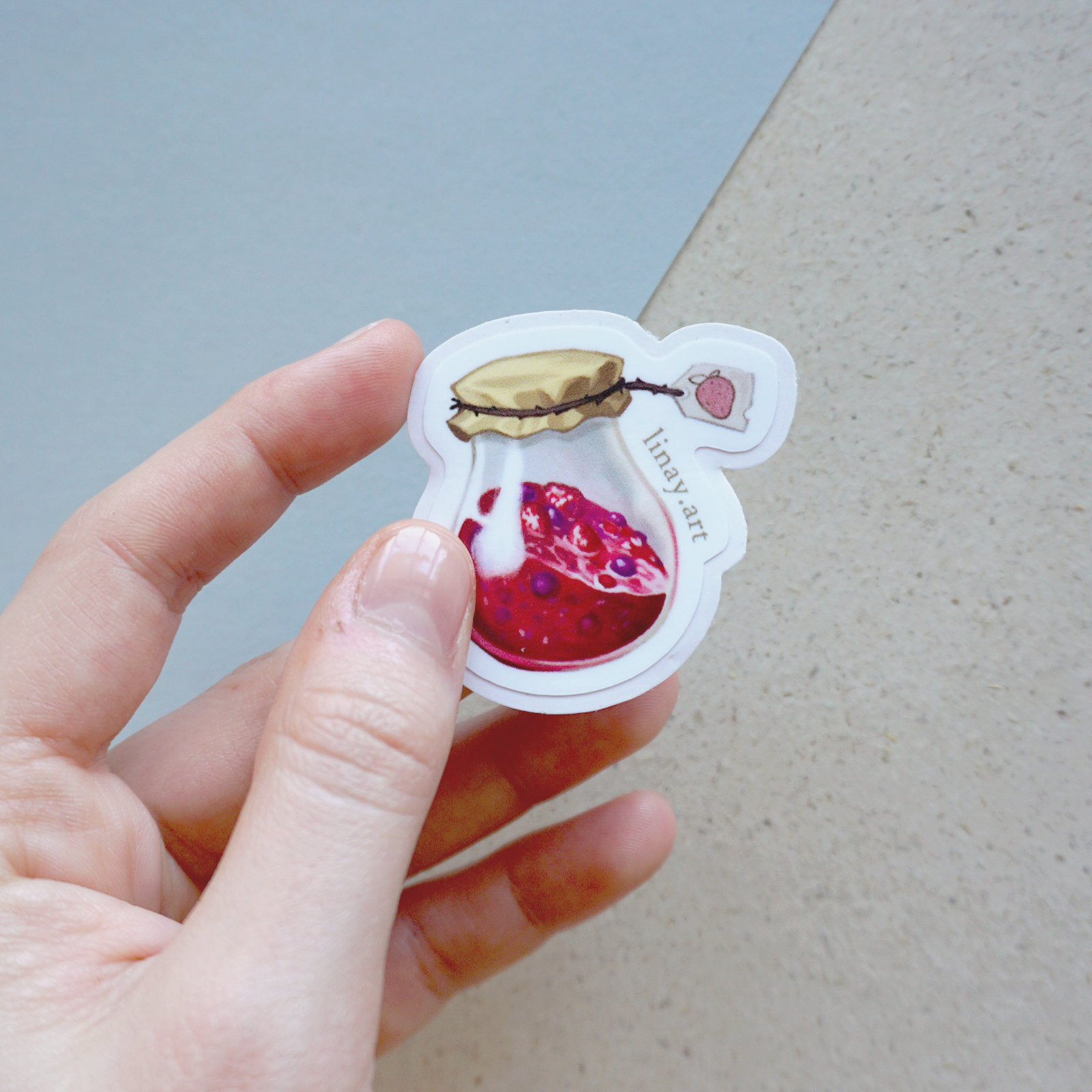 An original illustrated sticker featuring the Jam Potion Sticker .